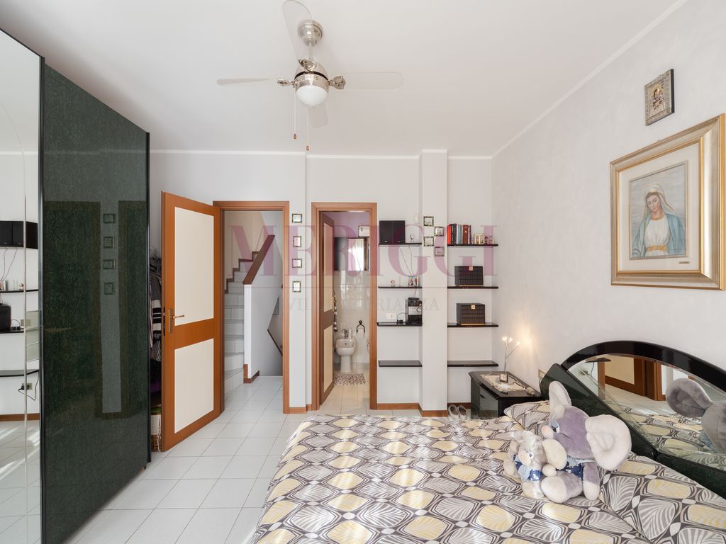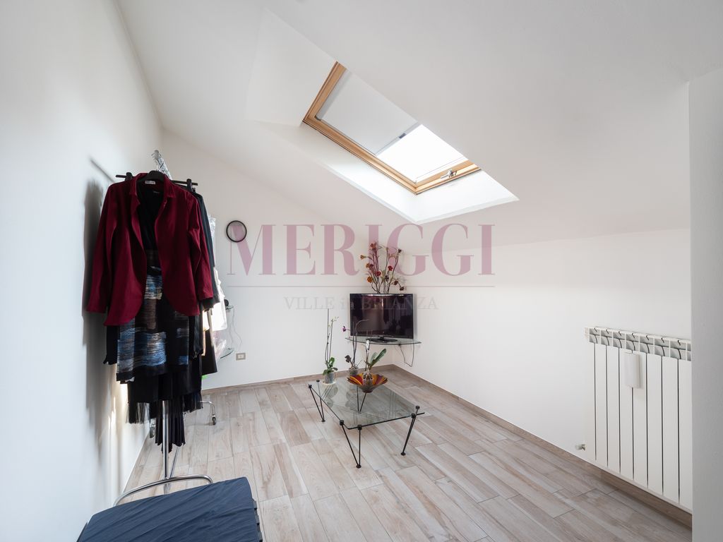 Non esiste un unico corridoio notte, ma una successione di ambienti riservati. Al primo piano troviamo la camera matrimoniale con bagno privato e balcone. Proseguendo verso l’ammezzato superiore, incontriamo la seconda camera da letto ed il bagno e, pochi gradini dopo, una terza camera con terrazzo a pozzo. Infine una mansarda completa il layout, ideale per lo smart working o il tempo libero.